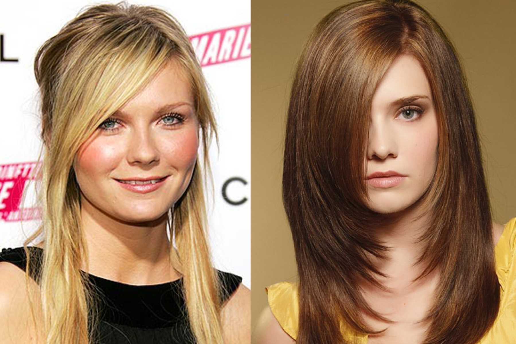 Ниспадающая чёлка хорошо сочетается с длинными волосами и удлиняет круглое лицо