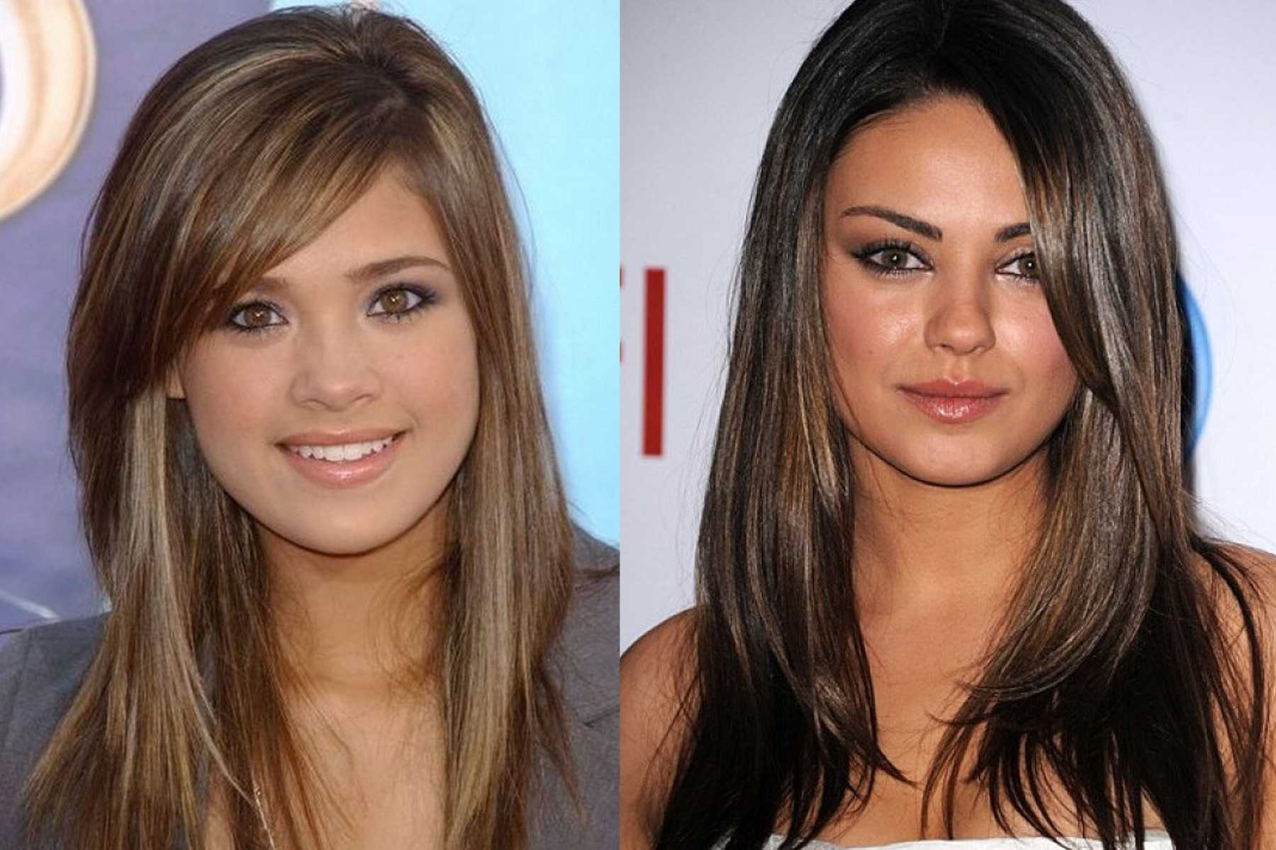 Темные волосы, окрашенные в один тон гарантируют, что лицо будет казаться больше, чем оно есть на самом деле. Однозначно ваш вариант – модные колорирование или мелирование, которые сейчас во главе бьюти-трендов.
