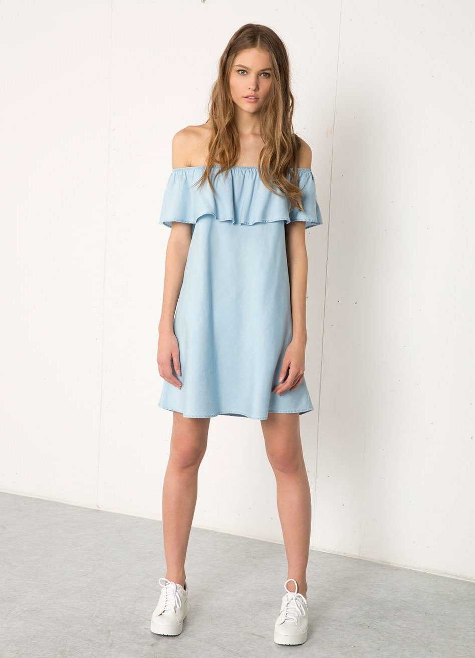 Такой вариант предпочтут женственные и романтичные особы. Оборки могут быть расположены и снизу, и сверху платья: в области плеч или на самом подоле. Благодаря этой детали можно визуально увеличить объем какой-либо части тела.