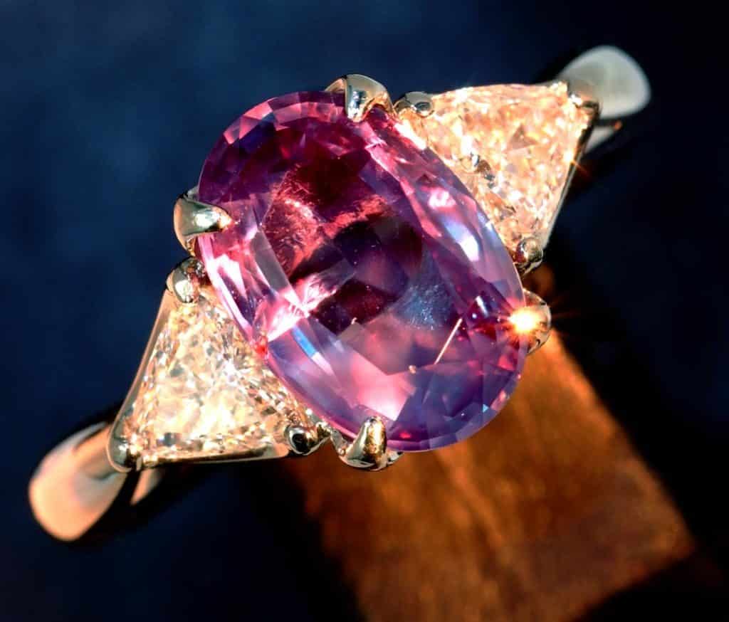 - Рубин. Самостоятельно отличить подделку не удастся. У минералов очень схожая цветовая гамма, а рубин еще и обладает в палитре оранжевым цветом. По стоимости изделия будут в равной ценовой категории, что с рубином, что с александритом.