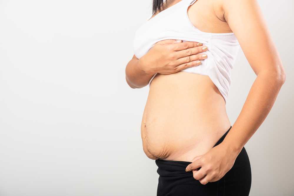 Изменению физических данных после беременности, в том числе появлению висячего живота и растяжек на коже способствует множество факторов: