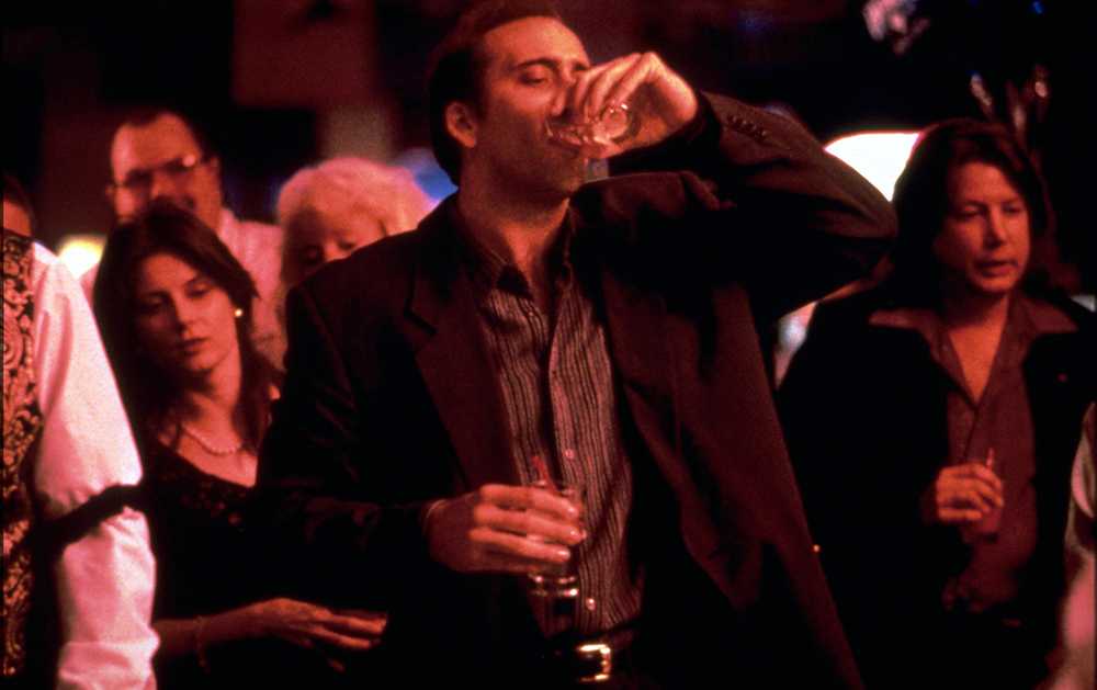 «Копировать характерные черты, манеры, повадки – для слабаков. Николасу Кейджу в самый раз копировать самого себя!» – наверное, так подумал актер, прежде чем уйти в запой на пару недель. Таким образом он готовился к роли Бена Сандерсона в фильме «Покидая Лас-Вегас». В мусорном баке бутылки увеличивались с каждым днем, как и отснятая пленка на камере. Да-да, эксцентричное «путешествие» Кейджа в запой снимал на камеру его друг – по просьбе самого актера. Вторым этапом становления «киноличности» стало посещение клиник и лечебниц для алкоголиков и долгие разговоры с бывшими «больными». Николас Кейдж проделал по-настоящему огромную и тяжелую для организма работу, которую оценили не только поклонники, но и Американская академия кинематографических искусств.