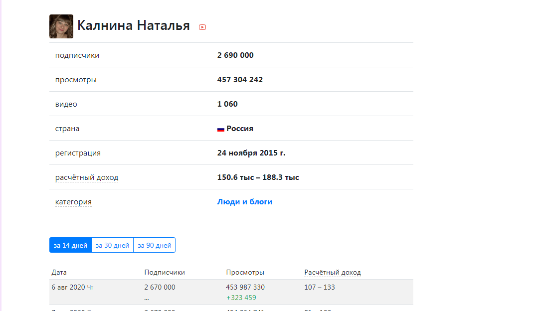 Итак, с момента создания канала, а, если быть точнее, с 24.11.2015 года, он принес Наталье больше 10 миллионов рублей! Конечно, это лишь приблизительные расчеты, произведенные автоматическим сервисом на основе количества просмотров.
