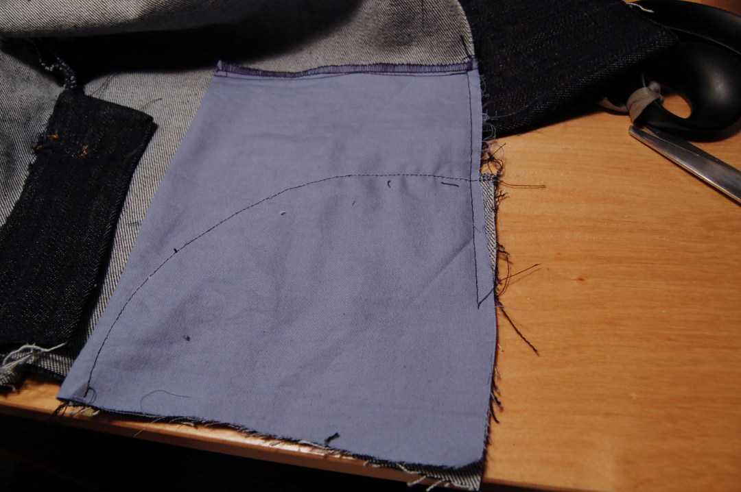 - Сшиваем все джинсовые детали с деталями из подкладочной ткани;