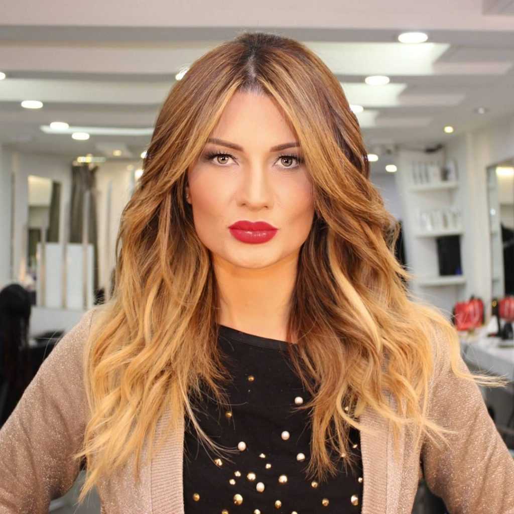 Техника позволяет получить эффект выгоревших прядок. Она отлично выглядит со светлыми, темными локонами. В последнем случае переход цветов более насыщенный.
