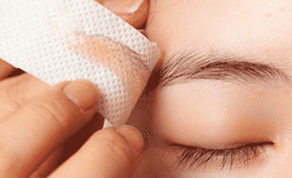 В процессе понадобятся ватные диски с лосьоном, увеличительное зеркало и кисточка для смахивания волосков. Чтобы уменьшить болевые ощущения во время процедуры, следует немного натянуть пальцами свободной руки кожу над бровью. В аптеках можно найти обезболивающие кремы и гели, способные помочь тем, у кого чувствительная кожа. Размягчить эпидермис способен теплый компресс – волоски будут удаляться проще. Противоположный подход – протирание участка кубиком льда – способен притупить боль.