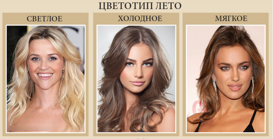 Очень распространен и разнообразен летний тип. Хоть лето и является жаркой порой, в палитре цветов эти женщины принадлежат к холодном подтипу. Ведь лето – это белый песок, серая пыль дорог, выгоревшая трава. Именно такие цвета и связывают с женщинами этого цветотипа. Для них характерны серебристо-пепельные нотки в отблеске волос.