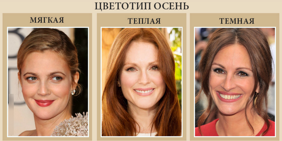 Если посмотреть в разных источниках, то узнать свой цветотип довольно сложно, так как волосы относятся к одному, глаза к другому, а тон кожи выделяется сразу в трех цветотипах. Поэтому следует сказать, что разделение на четыре поры года довольно условно, так как каждый из четырех цветотипов имеет свои подтипы. Дело в том, что каждый из вышеупомянутых сезонов разнообразен, к примеру: