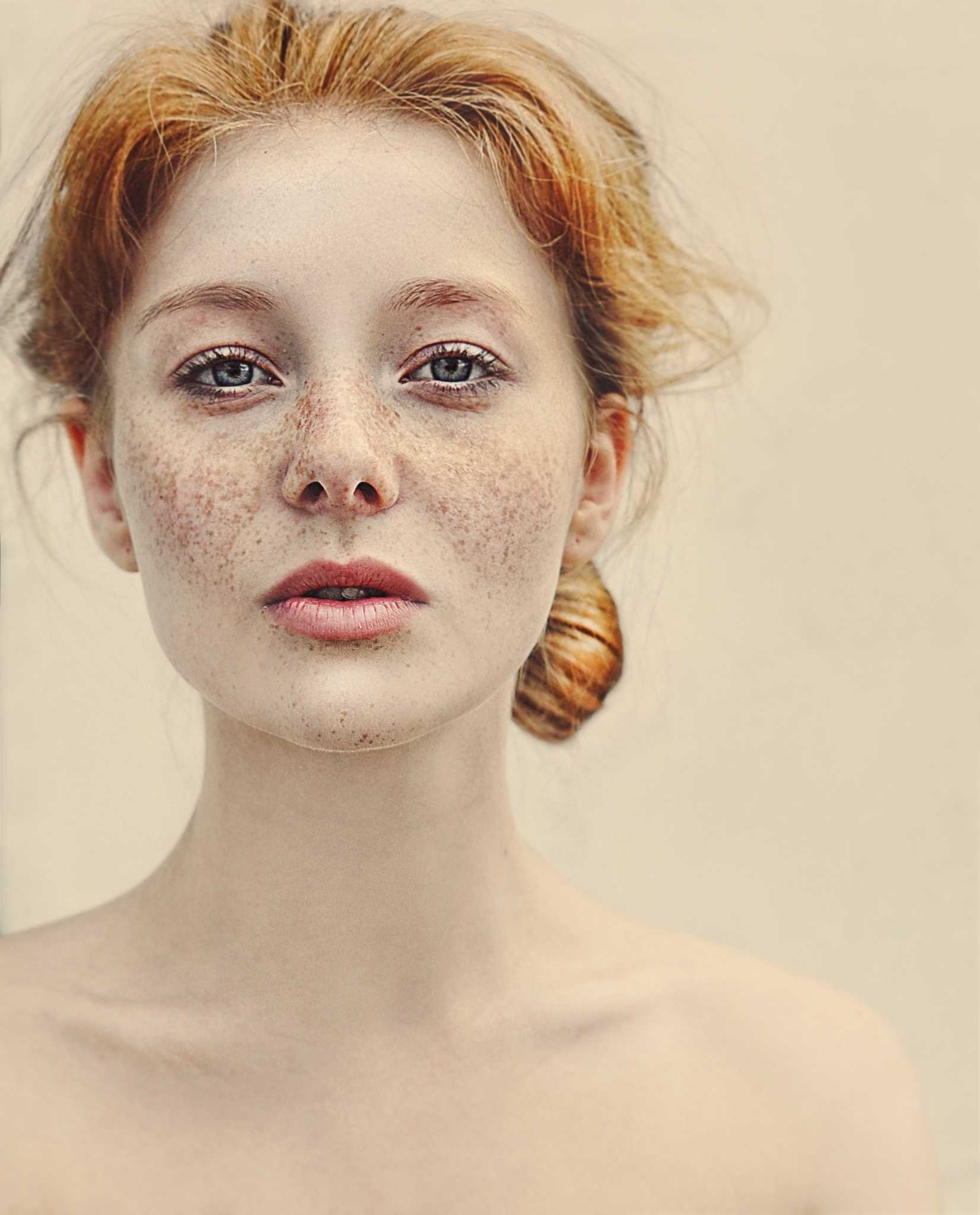 Такая внешность привлекает к себе внимание, поэтому мейкап должен быть идеальным. Веснушки на таком ярком лице придадут внешности особую пикантность