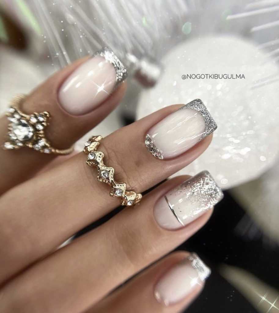 шикарный красивый маникюр 2018 с применением алюминиевого порошка;