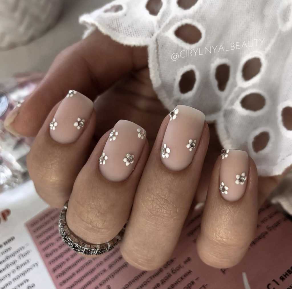 Нюдовые оттенки также остаются в тренде — они еще больше подходят для естественного повседневного образа. Хотите разнообразить нюдовый маникюр? Дополните его френчем или геометрическим принтом в пастельном цвете.