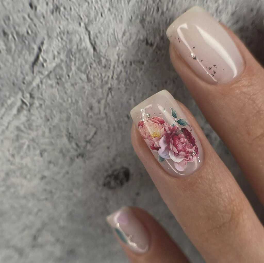 Модный летний маникюр не обойдется и без цветов. Этот вариант нейл-арта дает нам возможность использовать замысловатые и очень сложные узоры. Вы можете нанести цветок на один ноготь, а можете украсить сразу все. Особой популярность будут пользоваться ромашки и розочки.