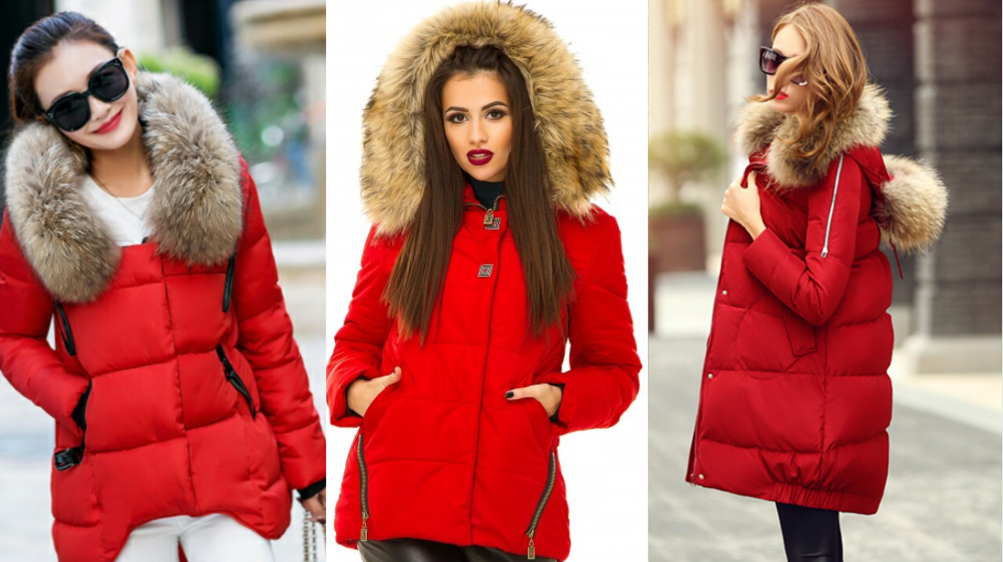 Идеальный образ – это сочетание трех цветов, не более. Беспроигрышным вариантом будет красный пуховик с базовой одеждой черного или белого цвета. Также в тренде монохромные образы и игра с оттенками. Если вы выбрали кричащий пуховик, аксессуары – брюки, шапочки, сумки, перчатки – могут быть или базового цвета или повторять тон в тон куртку.
