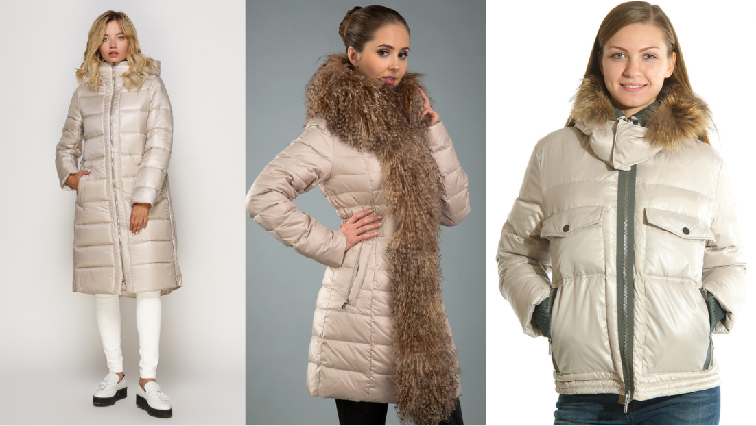 С чем носить бежевый пуховик? Классический беж – один из любимчиков женщин в возрасте. Светлый вариант отлично сочетается с голубым, серым, пудровым оттенком. Контраст можно применять с тёмными деталями гардероба: чёрной водолазкой, легинсами, глубоким синим трикотажным платьем, тёмной сумкой.