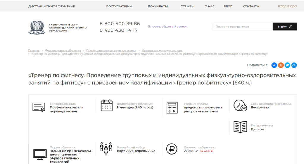 Курс Тренер по фитнесу от НЦРДО