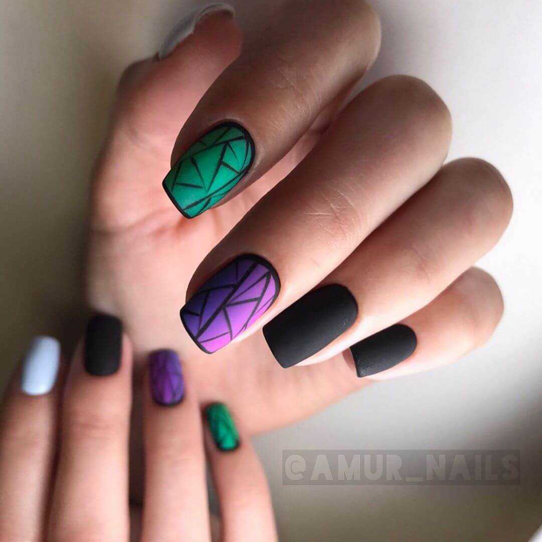 - нанесение разного цвета радуги на каждый ноготок;
