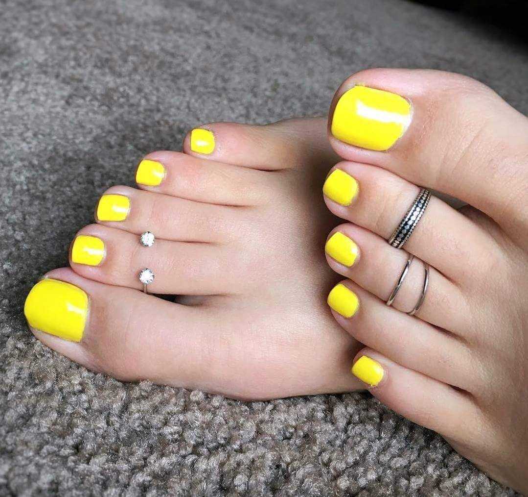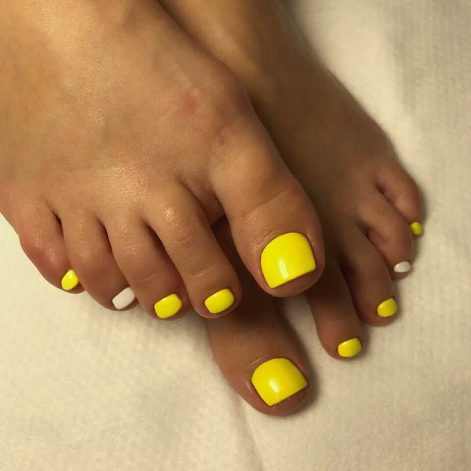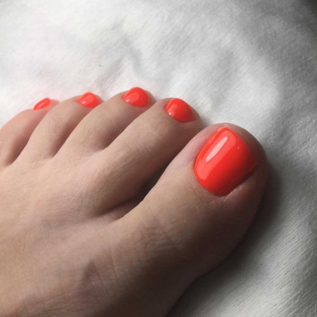 Один из оттенков оранжевого. Смело и очень броско. Только яркие по своей природе девушки могут «носить» такой педикюр и правильно его сочетать со своими образами. Здесь также сложно вписать желтый педикюр в классику, особенно, если вы работаете в офисе. Лучше сделать акцент на нейл-арте с использованием желтых оттенков или остановиться на приглушенном желтом цвете. Так вам действительно будет удобно носить его.
