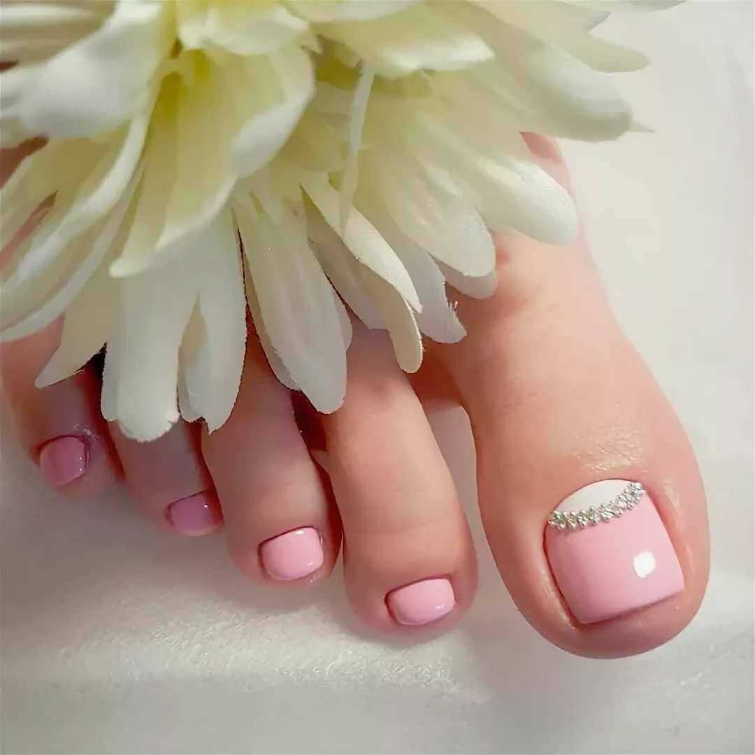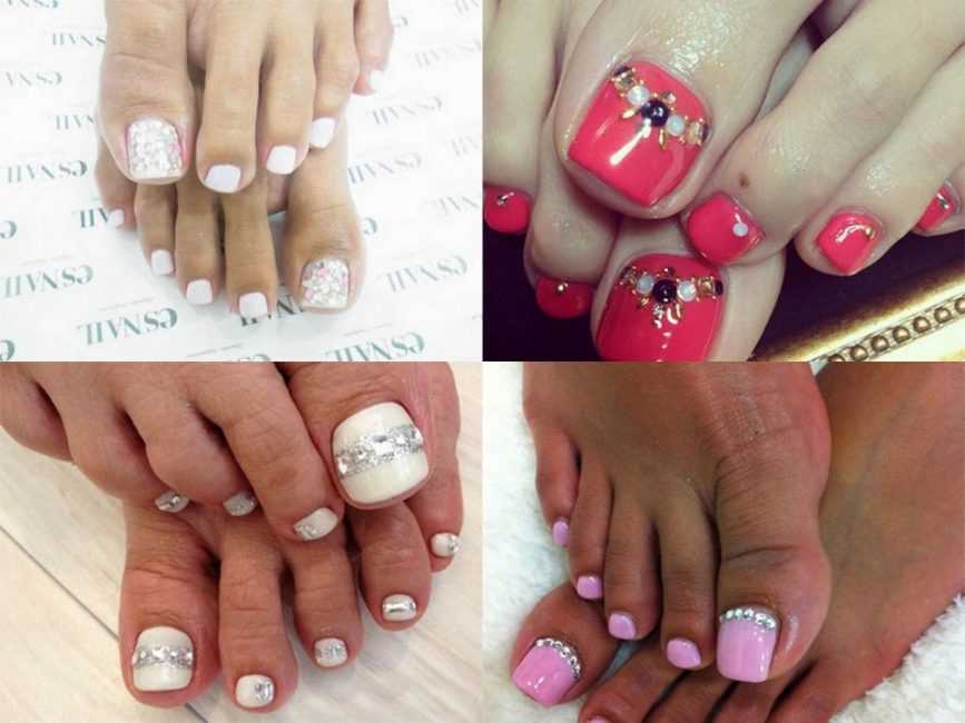 Применение броских элементов декора – стразов, камней – в педикюре должно быть умеренным, ограничиваться одним-двумя ноготками на каждой ноге, дабы избежать неаккуратности и нелепого внешнего вида