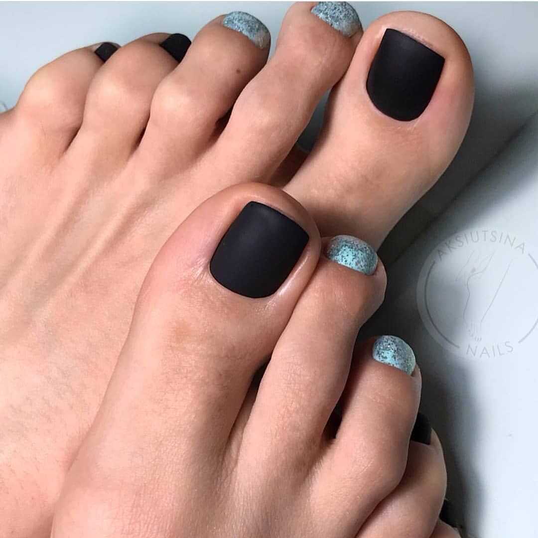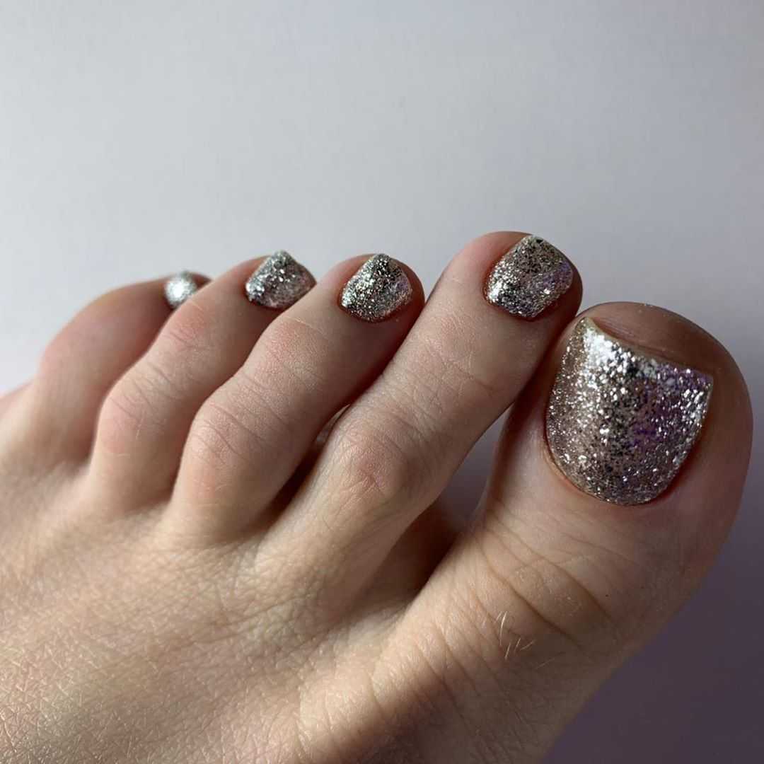 - Блестки прекрасно дополнят педикюр в темных и светлых тонах. Чтобы добиться красивого дизайна ногтей, достаточно добавить немного блеска вашему педикюру, например, сосредоточиться на одном или двух ногтях. Существует несколько видов блесток, наиболее распространенным является нанесение на ногти специальной теркой, кистью или рукой.