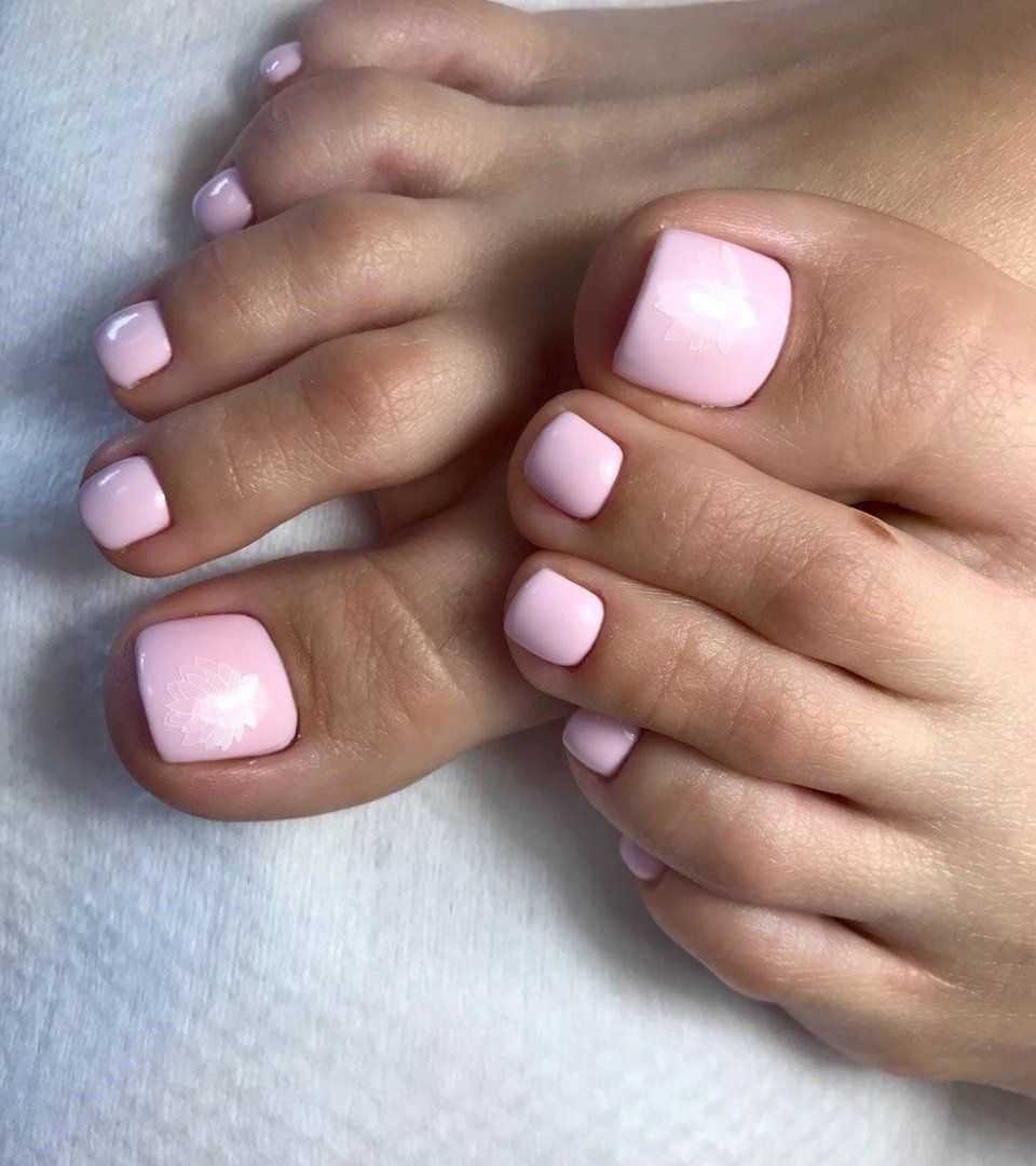 Ну какая девушка пройдет стороной мимо розового цвета? Особенно в педикюре. Особенно, когда такой оттенок не сходит с топ-3 лучших цветов в мире. Розовых тонов довольно много, поэтому подобрать что-то под себя не составит особого труда. С розовыми оттенками делают классический френч, разбавляют им другие тона (отлично сочетается с зелеными цветами), а также используют как самостоятельный оттенок. Поэтому не стоит переживать, если вы решились на розовый, ведь он может быть абсолютно приглушенным, пудровым тоном. Следовательно, подойдет как для учителя в школе, так и для работника банка или менеджера по продажам. Никаких казусов с его ноской не будет возникать.
