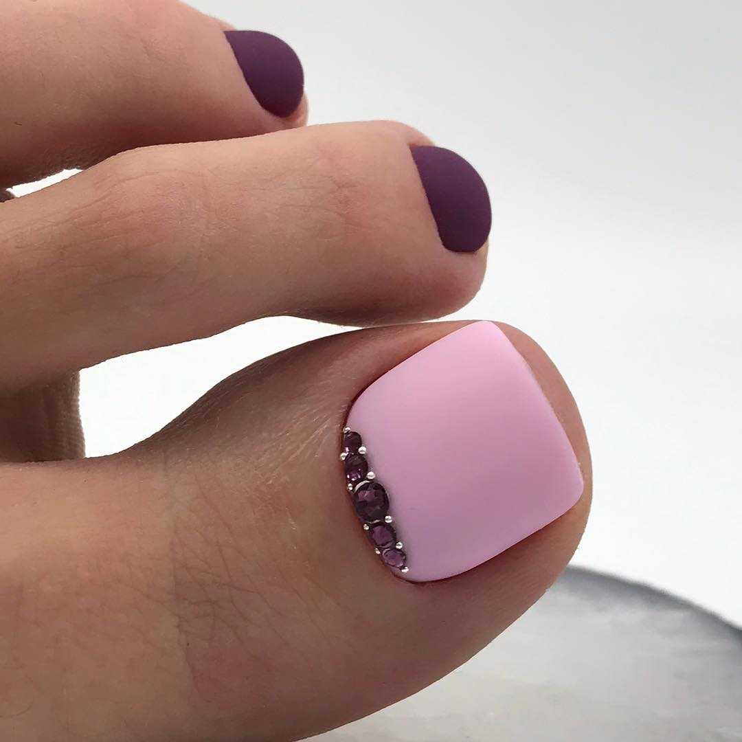 В летний период 2021 дизайнеры рекомендуют использовать для создания подобного педикюра не только один из выбранных оттенков лака, но и при желании выделять акцентный ноготок при помощи различных украшений или неброских рисунков. Это могут быть несколько блестящих кристаллов, аккуратная полоска глиттера у основания, милый цветок, бабочка либо пару полос – всё зависит от вашего предпочтения. Главное, чтобы педикюр максимально соответствовал выбранному стилю.