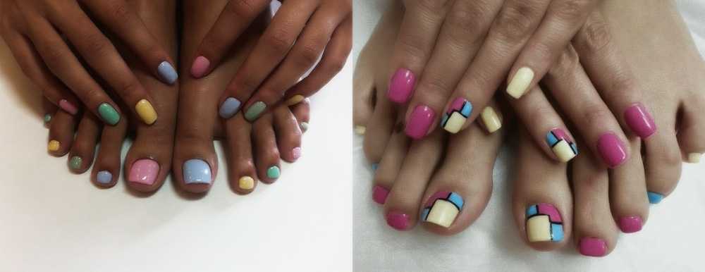 Стилисты особенно настаивают на том, что маникюр и педикюр, выполненные в едином стиле — пережиток прошлого, который намекает на провинциальный вкус обладательницы таких ноготков