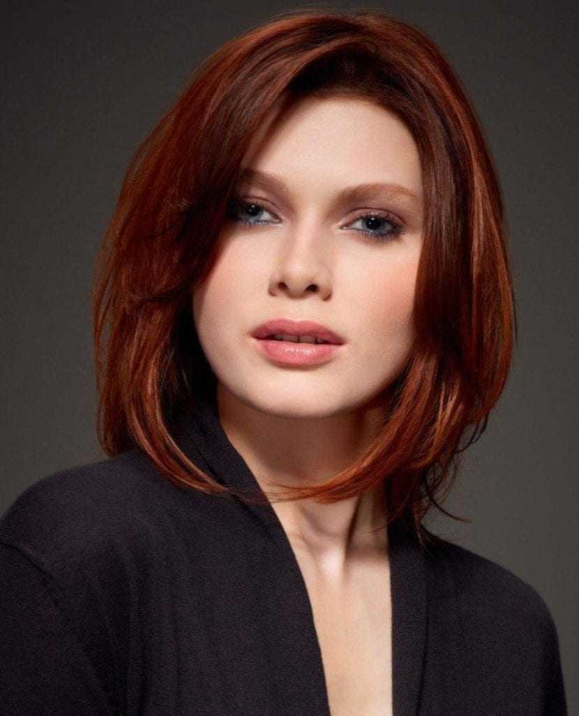 Чтобы отвести внимание от вытянутой формы, стоит украсить прическу неравномерными прядками у лба. В этом случае сама стрижка должна быть достаточно объемной.
