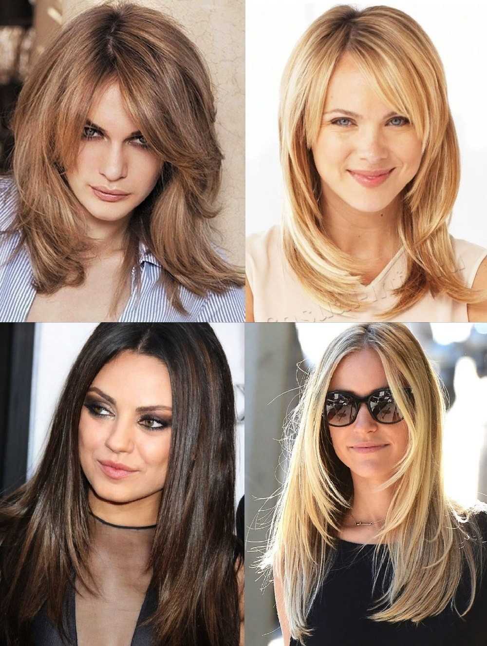 Для длинных волос допускается стрижка с челкой, которая дополнительно поможет откорректировать неправильные пропорции лица.