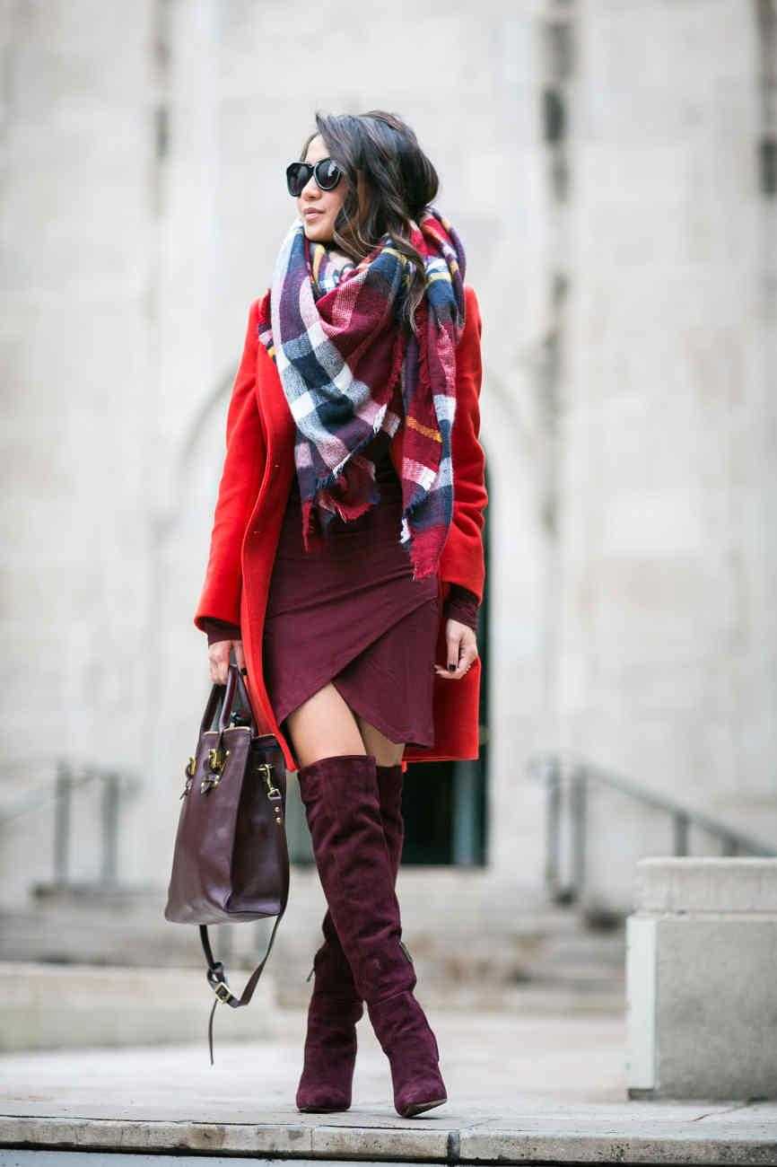 Если у тебя темные глаза и темные волосы, то оттенок красного идеально подходит для создания эффектного образа. Так, для повседневной носки хорошо смотрится приглушенный красный с коричневым подтоном.