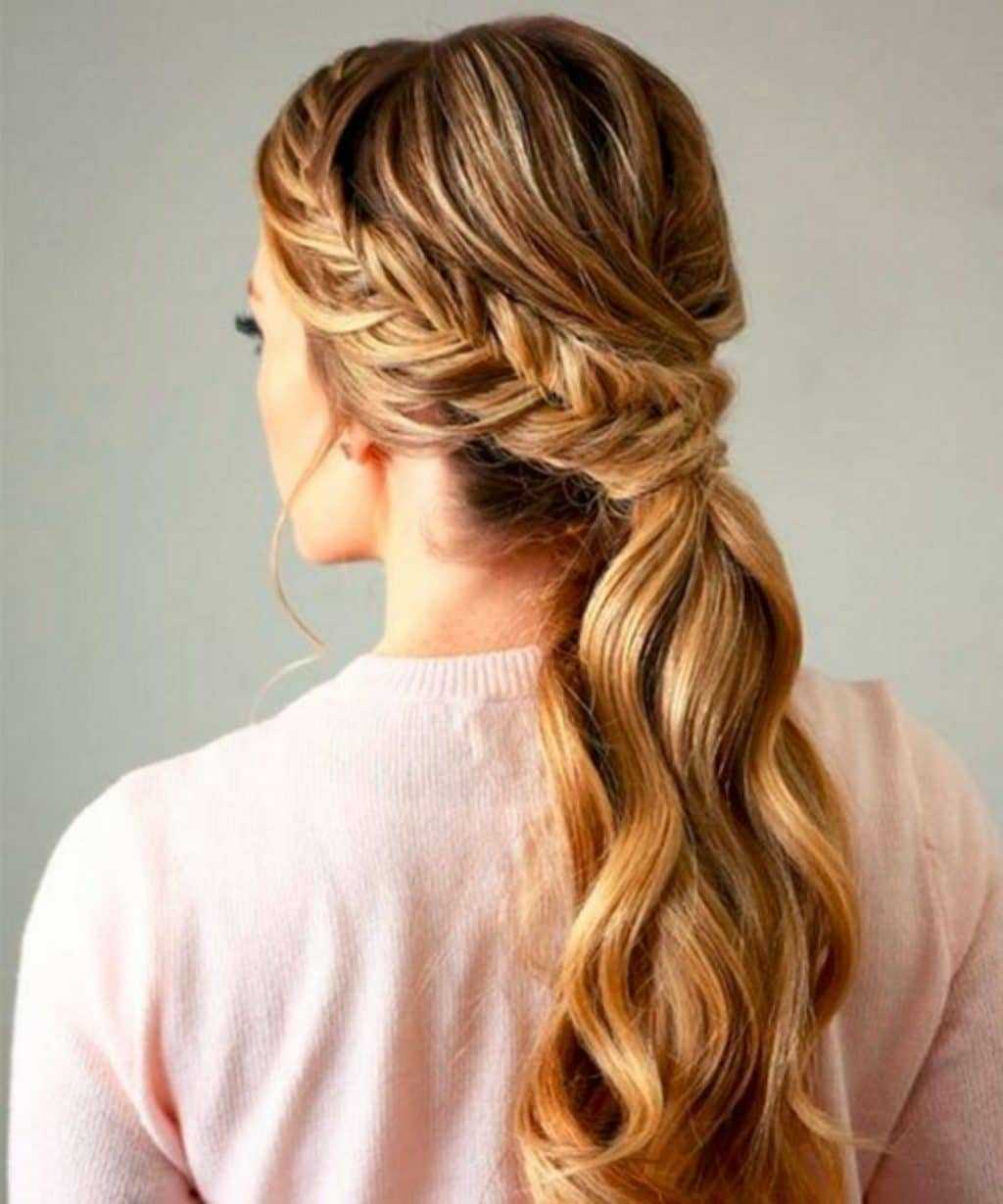 Платье-бюстье неплохо смотрится с гладкими или распущенными прядями. Подойдет высокий хвост или интересные плетения из кос.