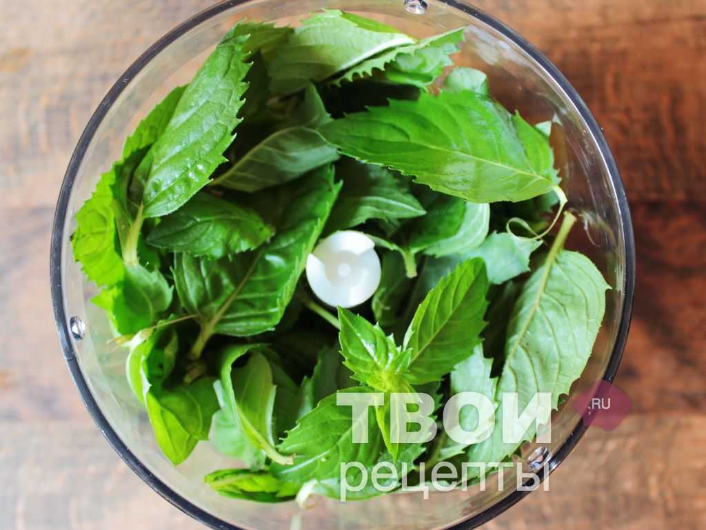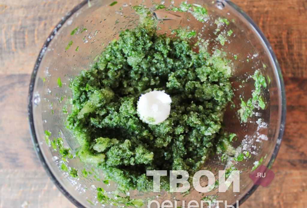 - Все ингредиенты хорошо взбейте блендером или миксером, добавив совсем немного воды, задача которой — создать гладкую пасту. В качестве альтернативы можно использовать мясорубку.