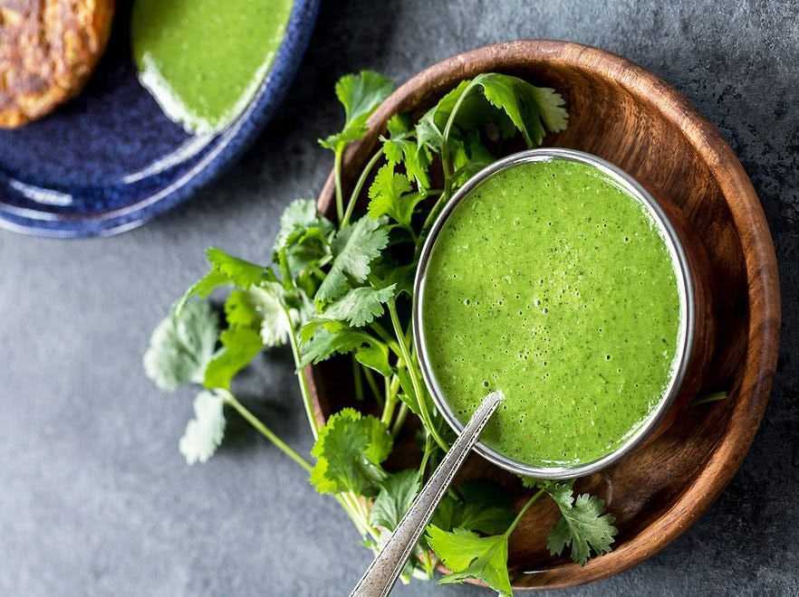 Чатни — это густой соус индийского происхождения, который содержит фрукты или овощи, уксус, сахар и специи и используется в кулинарии в качестве приправы, чтобы придать блюду одновременно сладкий и терпкий вкус, а также пряный и острый аромат.