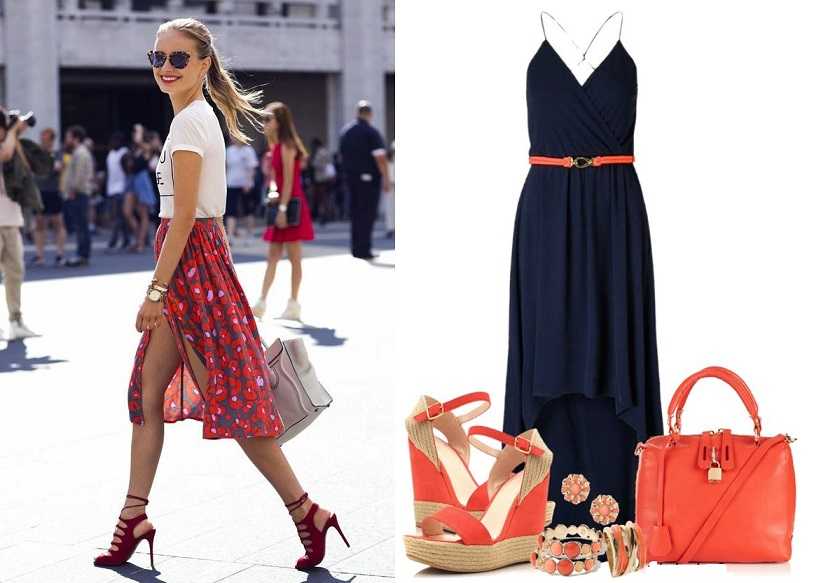 Красные туфли плохо сочетаются с лёгкими сарафанами и летними платьями. Но контраст белого платья с пышной юбкой и алых туфель на «шпильке» заставляет мужчин оборачиваться вслед. Свежо, красиво, нежно и ярко.