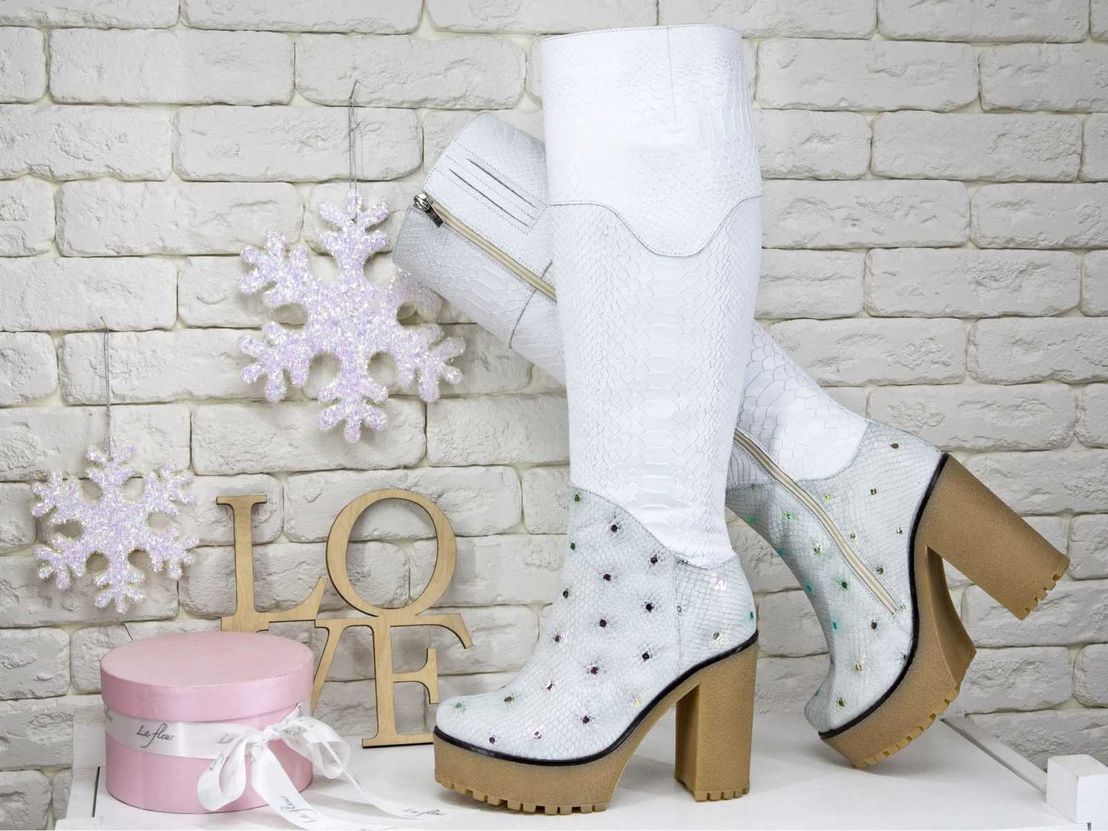 Под мини подойдут почти все виды белых сапожек, но лучше избегать моделей обуви на плоской подошве. Под юбку макси стоит попробовать надеть лаковые белоснежные сапожки или казаки.