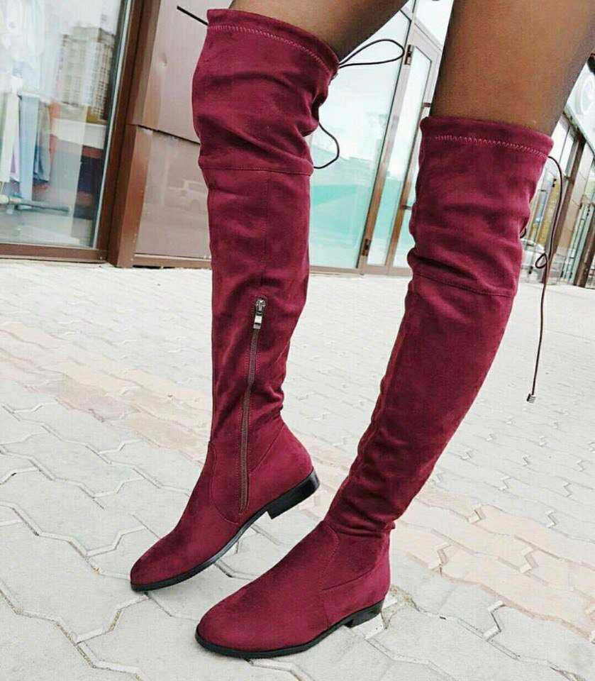 Невероятно комфортны замшевые сапоги-трубы без каблука, если же хочется составить женственный и привлекающий к себе внимание лук, можно воспользоваться моделью на шпильке или более широком высоком каблуке.