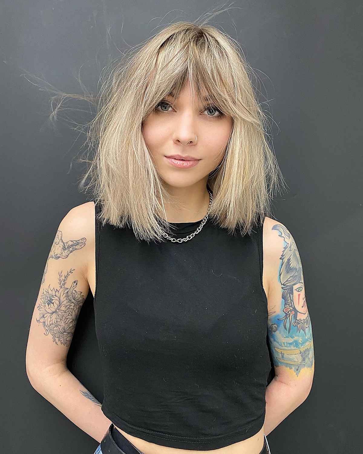A long blonde bob style is beautiful and versatile. It’s easy to style like a bob, but you’re still able to ponytail it when you need it out of your way!