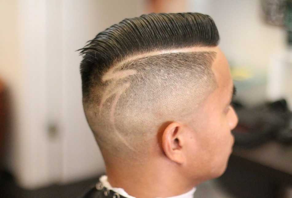 На затылке или виске насадкой под ноль выбриваются замысловатые узоры или даже полноценные рисунки.