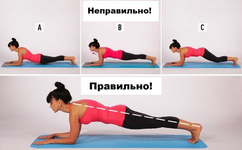 При неверном выполнении упражнения невозможно накачать пресс и привести тело в тонус. Положение тела в планке должно выглядеть так: