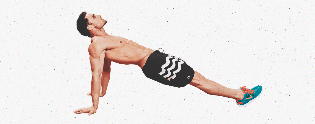 Для его выполнения сядь на пол, выпрями ноги, слегка согни ступни, руки расположи вдоль бёдер так, чтобы пальцы смотрели вперёд. Напряги пресс и, надавив руками на пол, приподними бёдра на несколько сантиметров от пола, при этом слегка отведя их за плечи. Задержись в верхней точке на две секунды и вернись в исходное положение. Достаточно пяти-десяти повторений и трёх подходов.