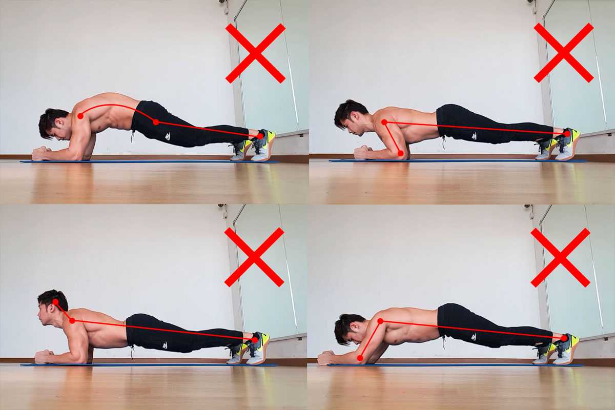 Типичные ошибки при выполнении упражнения планка — это чрезмерный подъем ягодиц вверх, а также создание избыточной нагрузки на плечи и запястья. Правильная техника подразумевает легкое «подкручивание» таза, при котором копчик направляется назад — это переносит нагрузку с поясницы и спины на мышцы живота.