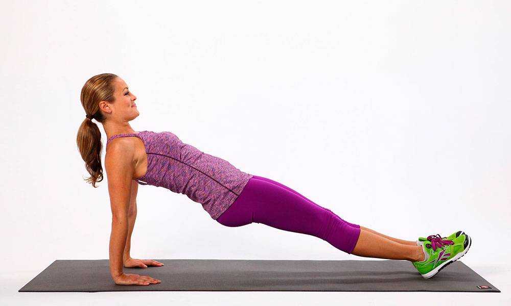 - Не позволяй средней части провисать и не выпячивай попу вверх. Удерживай прямую линию от головы до пят на протяжении всего времени. Поясница должна быть максимально плоской.