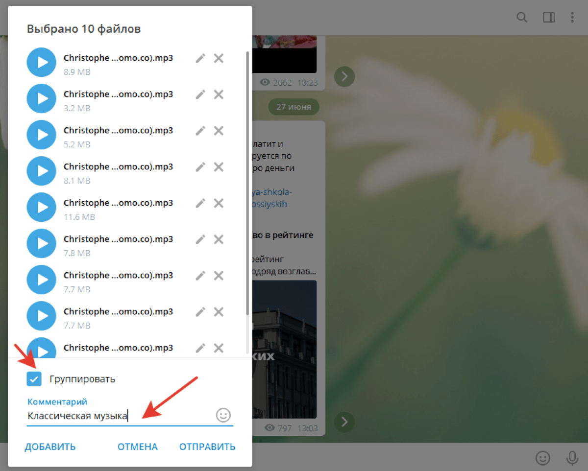 При отправке нескольких треков их можно сгруппировать в плейлист — так их удобнее прослушивать, пересылать и комментировать. Как это сделать?