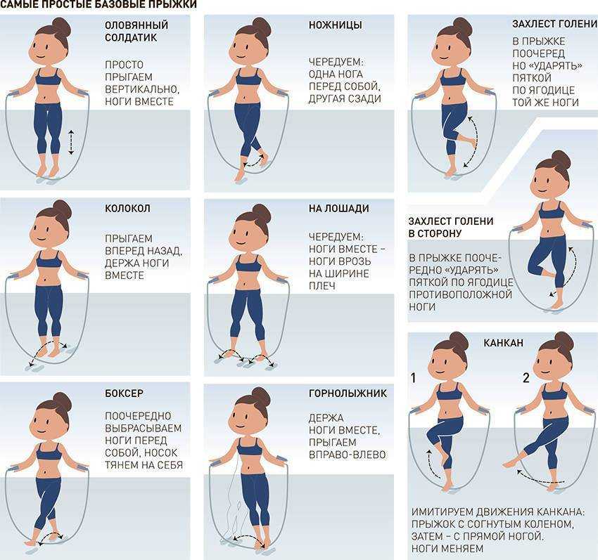 Скиппинг — это не просто прыжки на двух ногах. Это комплекс разных упражнений через веревку, поочередное выполнение которых поможет за короткий промежуток времени восстановить тонус и эластичность мышечного корсета, устранить целлюлит, избавиться от подкожной жировой прослойки. Виды упражнений с веревкой: