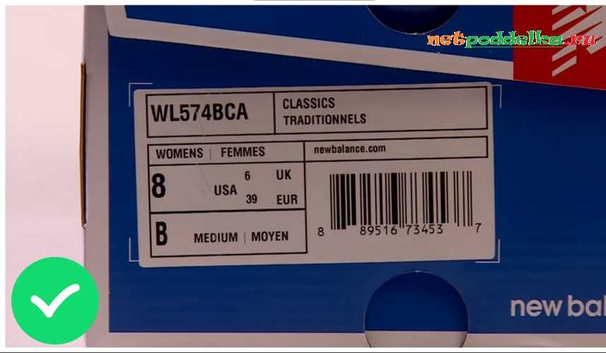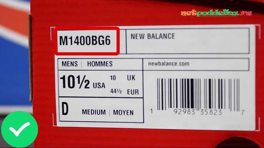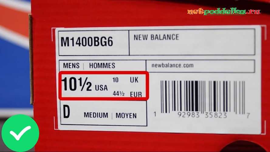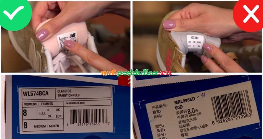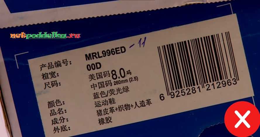 Этикетка оригинальных кроссовок New Balance не должна содержать иероглифов. Приведенный штрих-код, в большинстве случаев, имеет 12 цифр вместо 13. Это иногда вызывает трудности с его считыванием и проверкой через приложения на смартфоне. Штрих-код на фирменных упаковках соответствует стандарту Universal Product Code, который распространен в США.