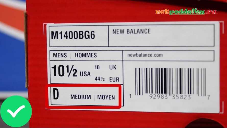 На этикетке коробки обязательно указывается полнота модели и ее другие характеристики. Буква дублируется на самих кроссовках.