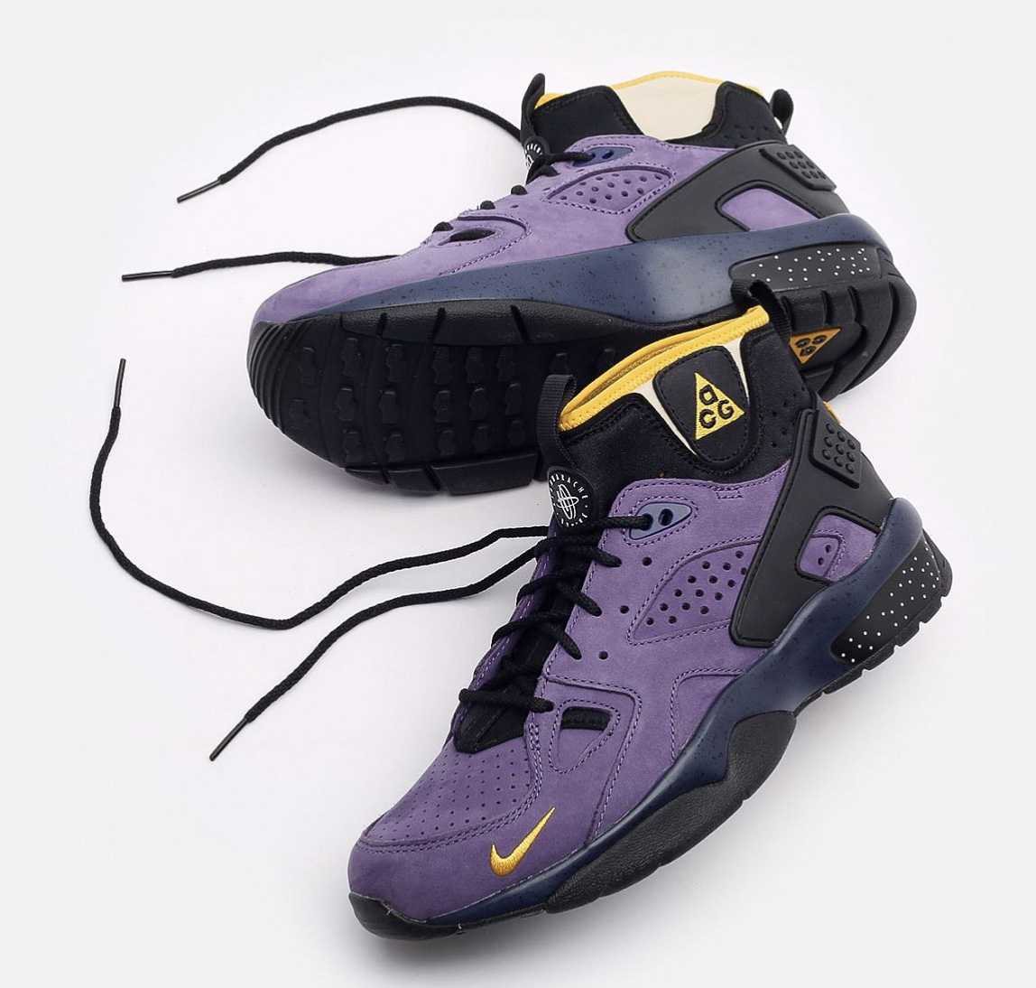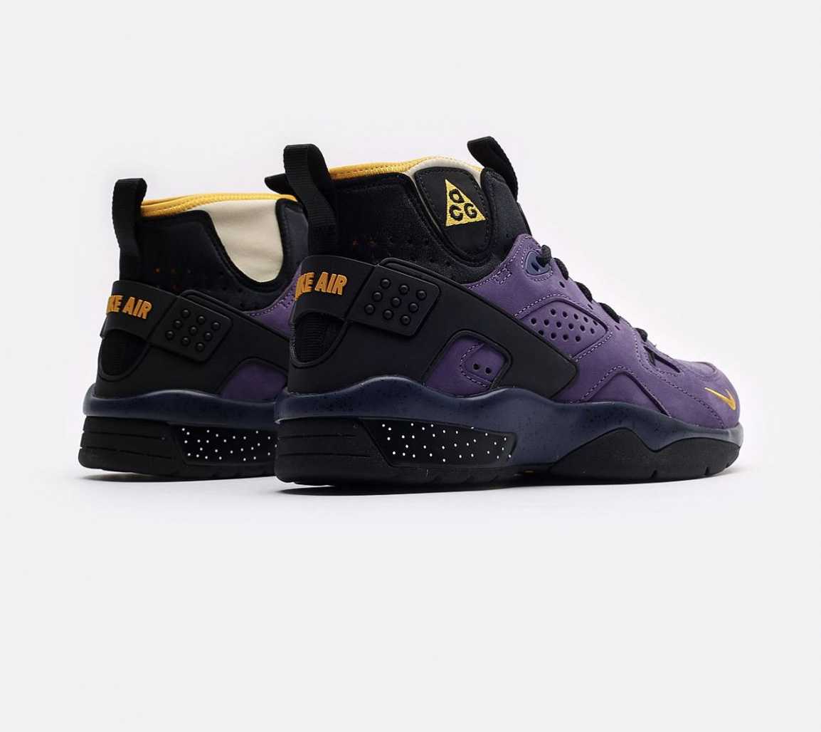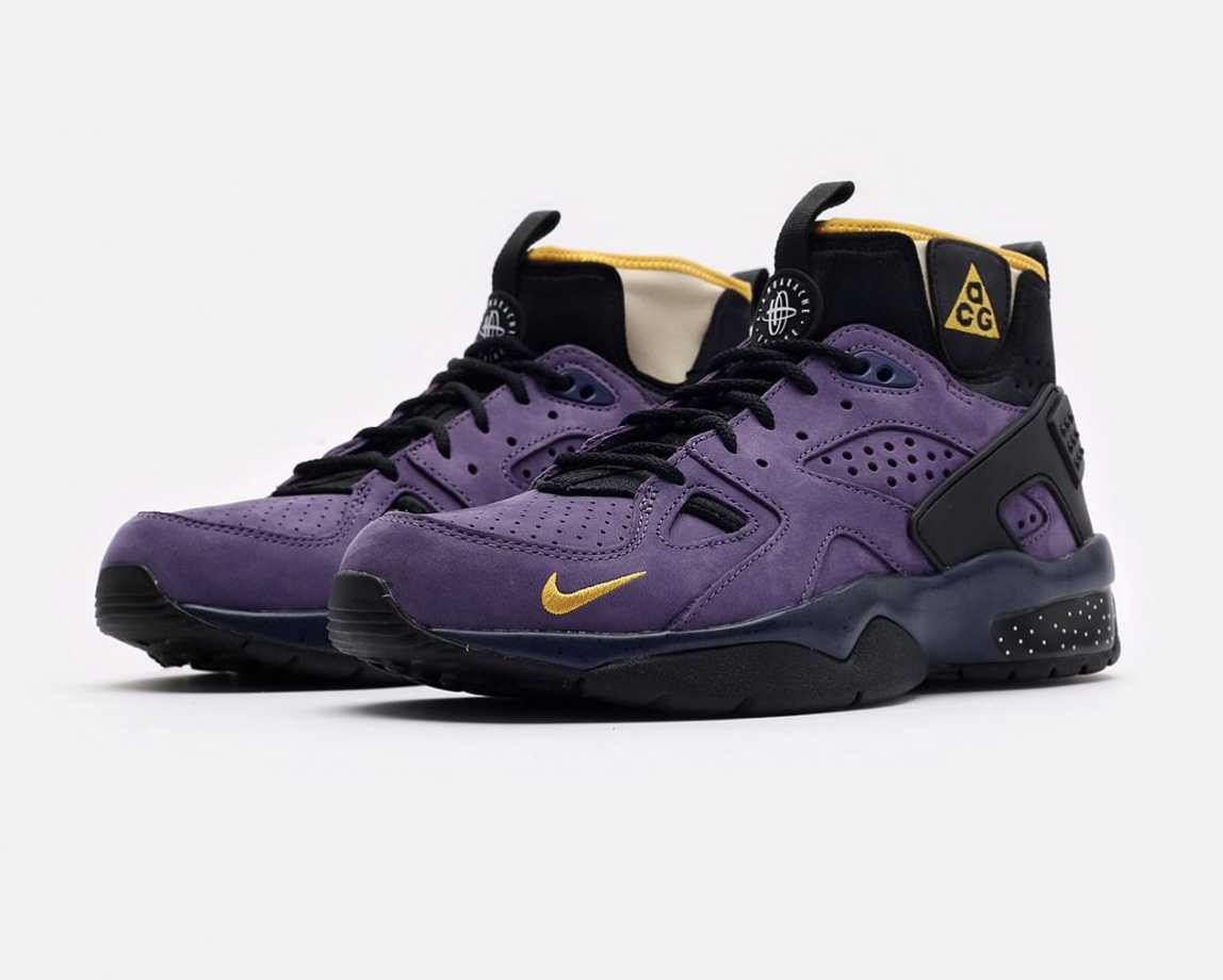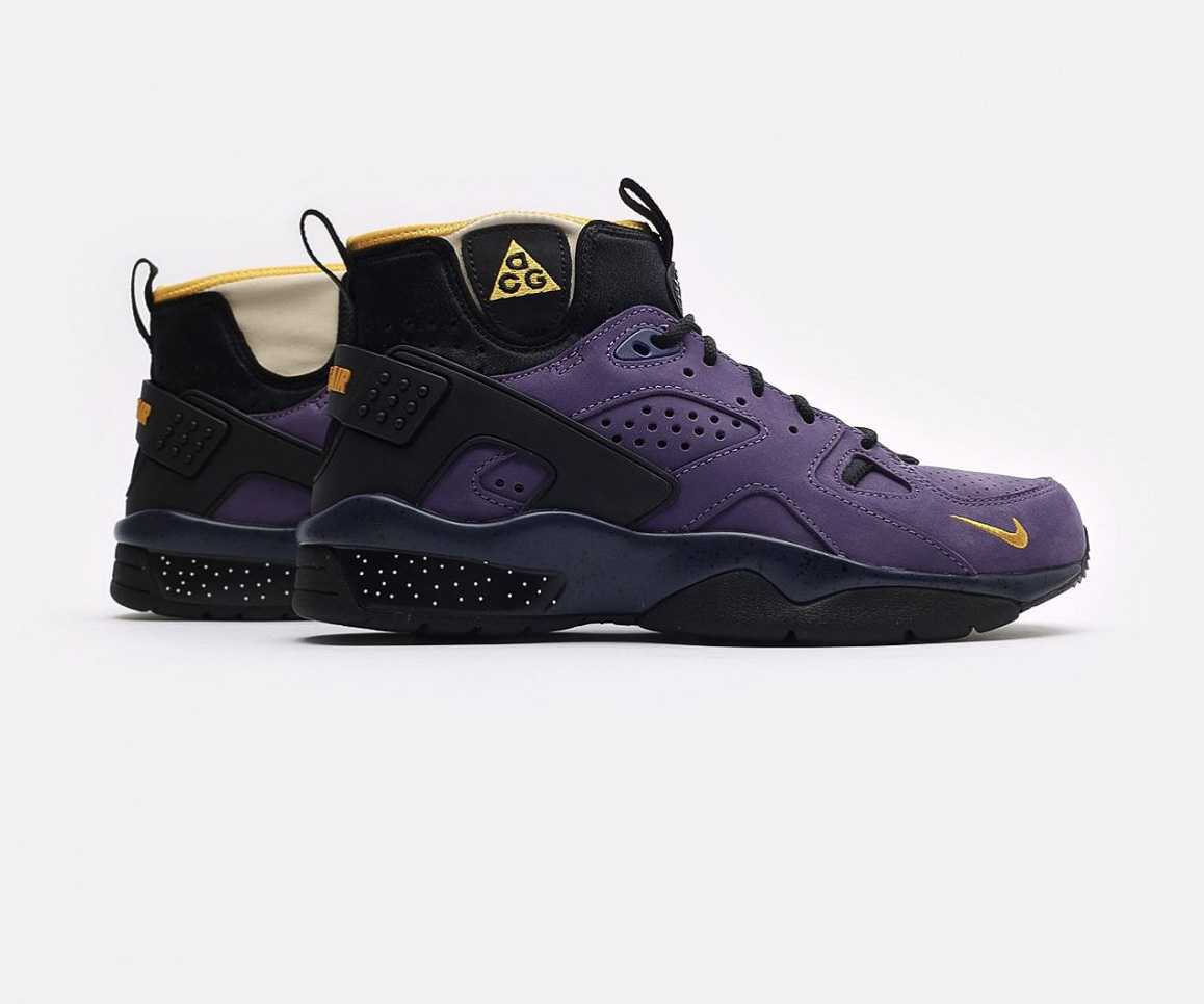 Эта модель – переиздание классической пары ACG, которая впервые увидела свет в 1991 году. С тех пор многое изменилось, включая материалы: ACG Air Mowabb 2021 сделаны из фиолетовой замши и текстиля. Конструкция «воротника» кроссовок создана из неопрена и дополнена двумя петлями для лёгкого надевания.