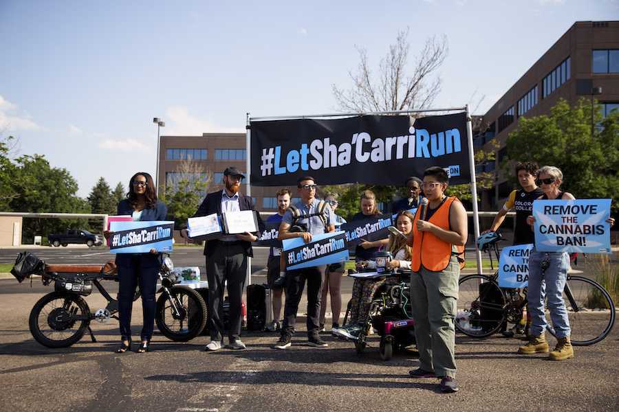 Пикет в штате Колорадо в поддержку американской легкоатлетки ШаКарри Ричардсон — летом 2021 года ее отстранили от Олимпиады в Токио из-за найденных в ее пробе следов марихуаны