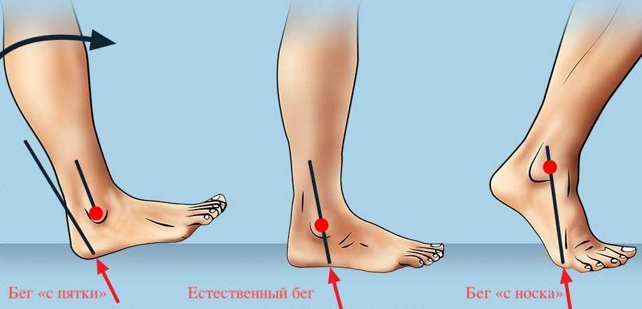 При естественном беге приземление приходится на среднюю часть стопы, как раз под центр тяжести тела. Основная нагрузка идет на ахиллесово сухожилие, выбирайте модель хорошо его фиксирующую.