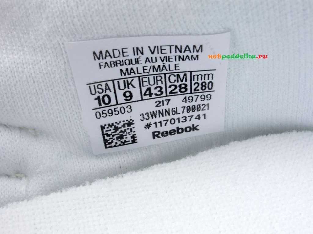 Оригинальная продукция Reebok производится в Италии и Германии, но в основном во Вьетнаме, Индии, Индонезии, Китае и Кореи. Копия и оригинал, сравниваемые в этой статье, изготовлены во Вьетнаме.