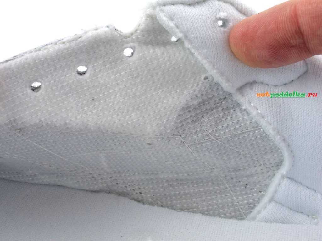 . Кроссовки любого известного бренда стоит внимательно осмотреть. Подделку может выдавать низкое качество изготовления – неровные строчки, обилие клея с резким запахом, «заусенцы», плохо обработанные отверстия под шнурки.
